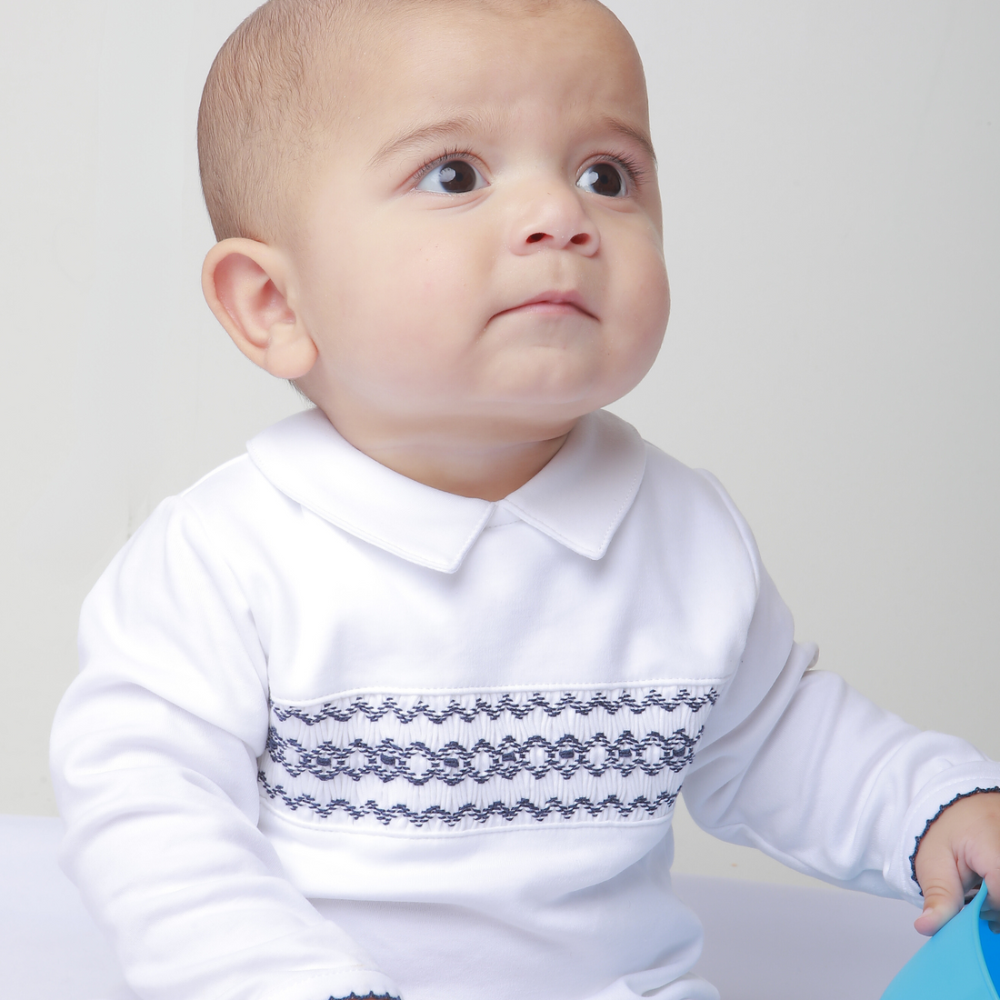 Our Smocked Peruvian Pima Cotton Footie, crafted from the finest, hypoallergenic, and thermoregulating fabric, it...