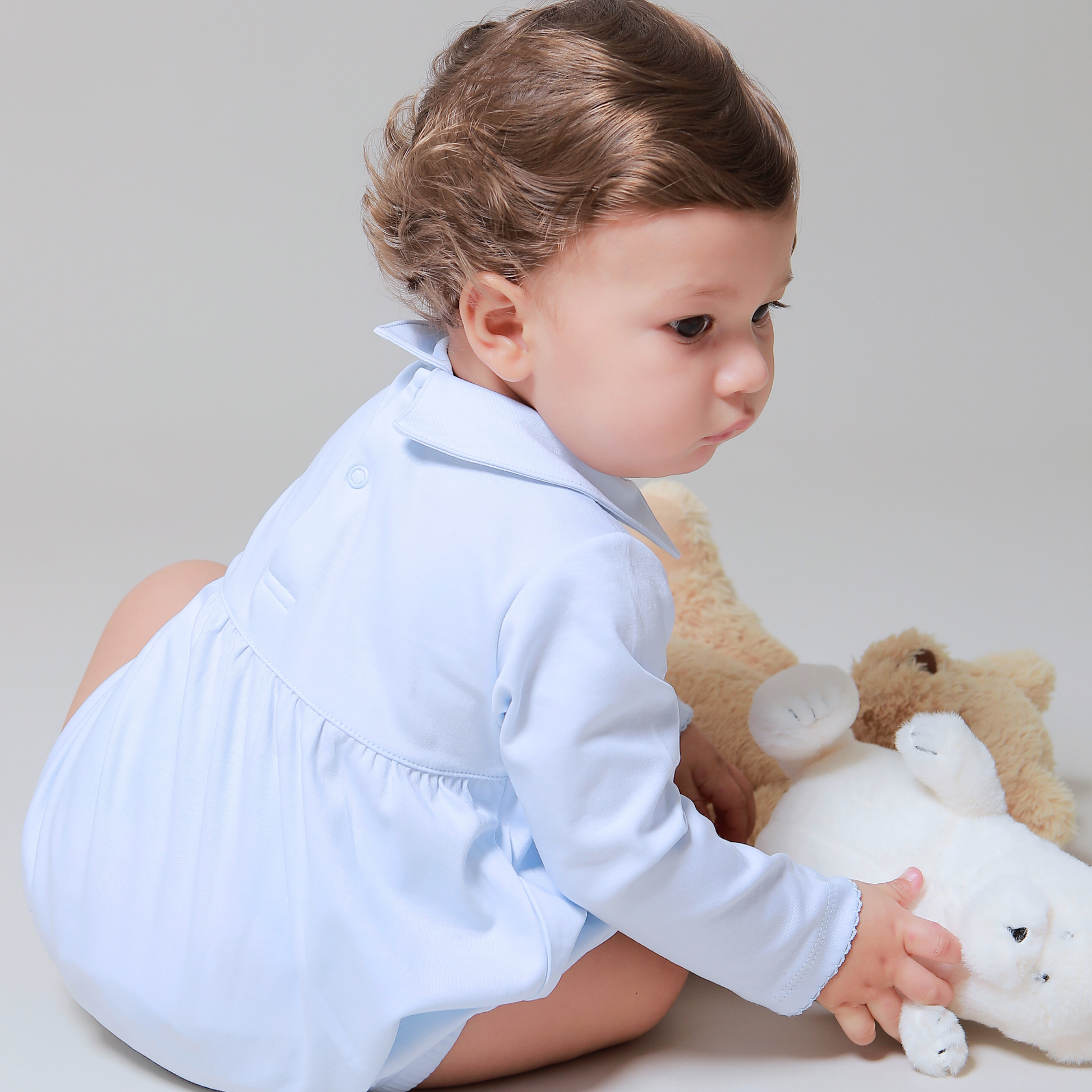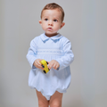 Our Peruvian Pima Cotton Bubble combines timeless elegance, extreme comfort, and heirloom quality. Ideal for all seasons, it can be easily styled with leggings or knee-highs in cooler weather. Great for: baby shower gifts, birthday presents for baby boys, 1st birthday outfits for boys, baptism, christening, brit milah, and religious ceremonies outfits for babies, christening presents, holidays gatherings, eastern boy romper, baby photoshoot outfits, and family celebration outfits for toddlers.